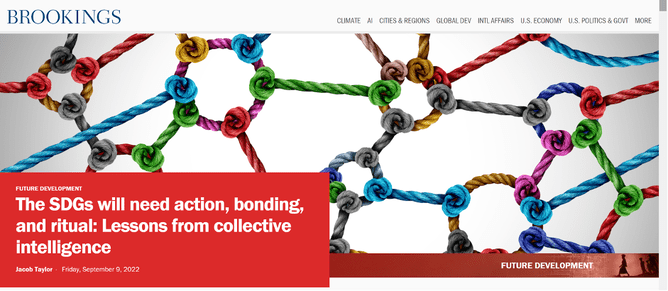 The full article can be accessed here: The SDGs will need action, bonding, and ritual: lessons from collective intelligence (brookings.edu)