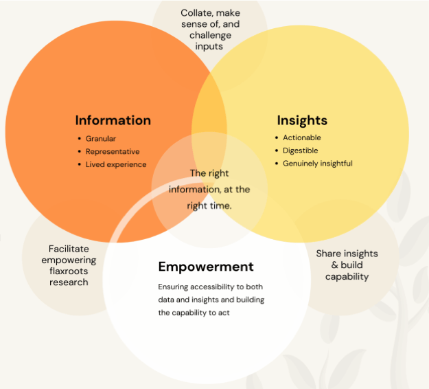 From this, and in partnership with many of the key wellbeing knowledge organisations in the Waikato, we have further refined the opportunity as the confluence of (a) information (b)insights and (c) empowerment.