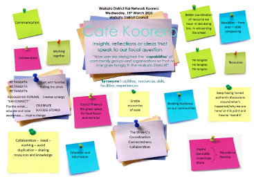 As reported previously, we held a kai workshop with 28 stakeholders with an interest in the Waikato food system early this year. We were interested in how the Waikato kai system works and what needs to change to meet our goals.