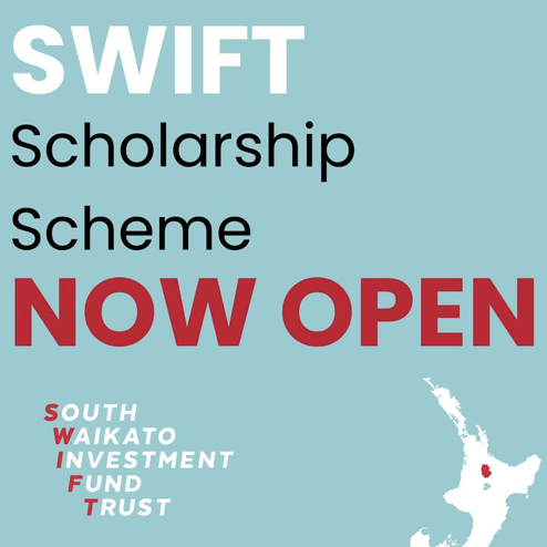 South Waikato Investment Fund Trust (SWIFT) have launched a $50,000 scholarship scheme to help South Waikato residents of all ages with their tertiary education.