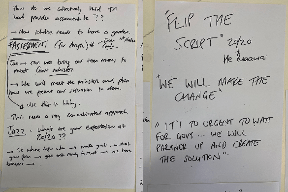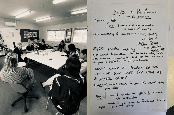 As a result of this first hui, we have since had three more and very quickly it has been identified that at least eight of the teen parents are living in extremely sub-par transitional housing on Ulster Street in Kirikiriroa and are in dire need of a safer home. Angie Simpson immediately initiated and led a process with the Ministry of Housing and Urban Development and MSD to locate two houses for the teen parents and a referral of the transitional housing contract from their current service provider to 20/20 Sustainable Housing. This is now in the pipeline and the hope is that the teen mums will live in a house together with their own rooms and bathrooms, safe fenced garden for their babies and young children and the right to self-determination to build their future whilst under the ongoing care and support of 20/20.
