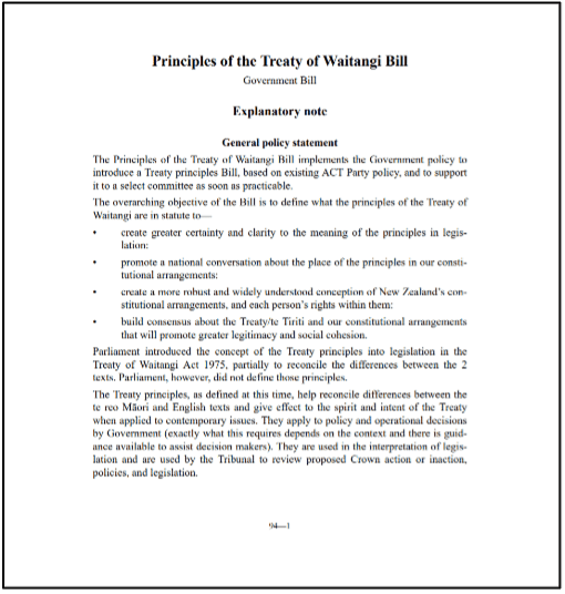 In our submission, we note that the justification for the bill is the need for a national conversation about the constitutional role of Te Tiriti o Waitangi |Treaty of Waitangi and its principles in modern day New Zealand. That discussion has been happening for at least the last 50 years. The general arc of those discussions has been towards greater unity, reconciliation and wellbeing. The Bill appears to want to change direction and hasten the conclusion of that discussion through statute.