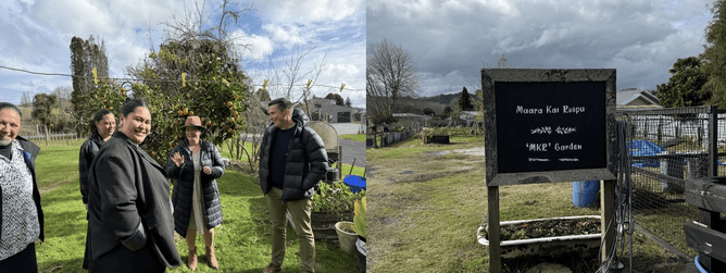 Elsewhere in the region, our lived experience research in partnership with ThinkPlace continues. The team travelled to Te Kūiti and spent two days engaging with the Ngāti Maniapoto Marae PACT Trust and the Maniapoto Maara Roopu. Peter and Kataraina from ThinkPlace were welcomed with immense manaaki and generosity and were deeply moved by the willingness of whānau to share their stories. The visit included time spent with trustees, maara workers, and whānau who have long histories of growing kai on their whenua — with fruit trees and other evidence of this still standing strong today. The kōrero covered the past, present, and future of kai in Maniapoto, offering valuable insights into what food resilience looks like in this rohe. These stories will help shape a richer understanding of the lived experience of food in our region and will inform a report currently in development by the ThinkPlace team.