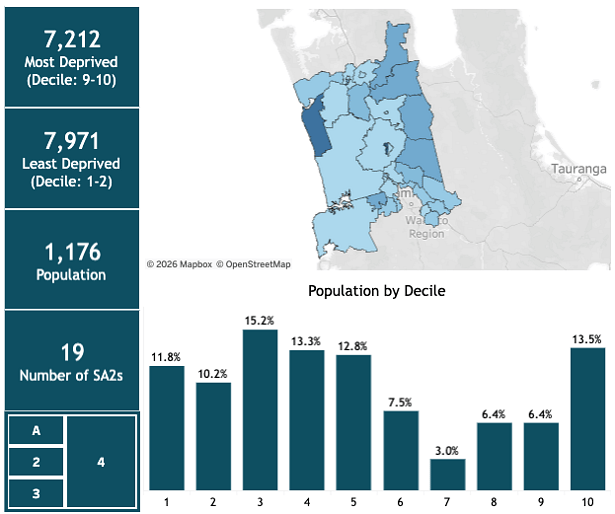 Figure 2. Deprivation in the Waikato District, 2023 (Census), WHI Housing Data Lake
