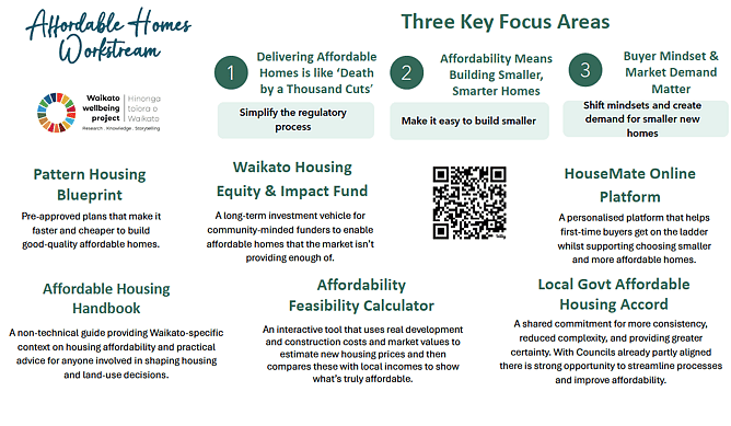 Identify and advance real world solutions on what it would take to improve housing affordability in the Waikato region.