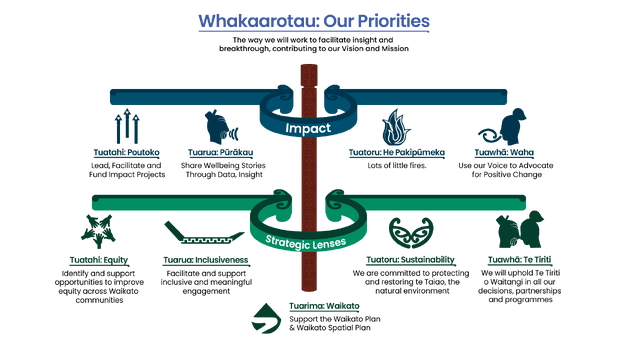 The Waikato Wellbeing Project is a regional initiative to achieve a more environmentally sustainable, prosperous and inclusive Waikato region by 2030 and beyond. Mātauranga and Te Ao Māori (Māori world view) principles are embedded Waikato Wellbeing Project.