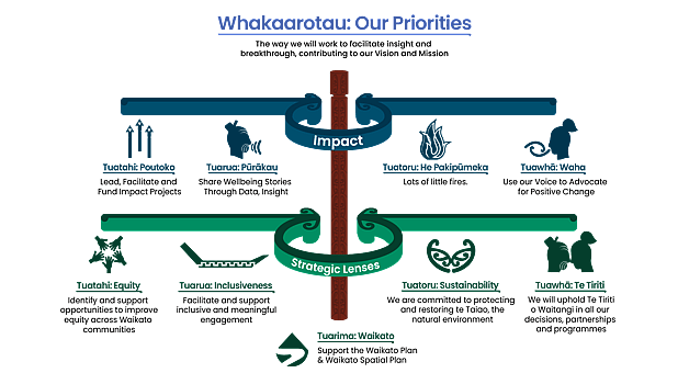 The Waikato Wellbeing Project is a regional initiative to achieve a more environmentally sustainable, prosperous and inclusive Waikato region by 2030 and beyond. Mātauranga and Te Ao Māori (Māori world view) principles are embedded Waikato Wellbeing Project.