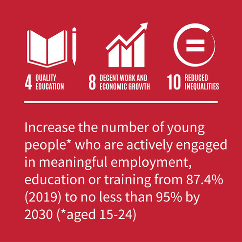 Our wellbeing target is that all of our young people are engaged and productive, they are learning or learning a livelihood, their mana is enhanced, and they are on a positive pathway to have many life options.